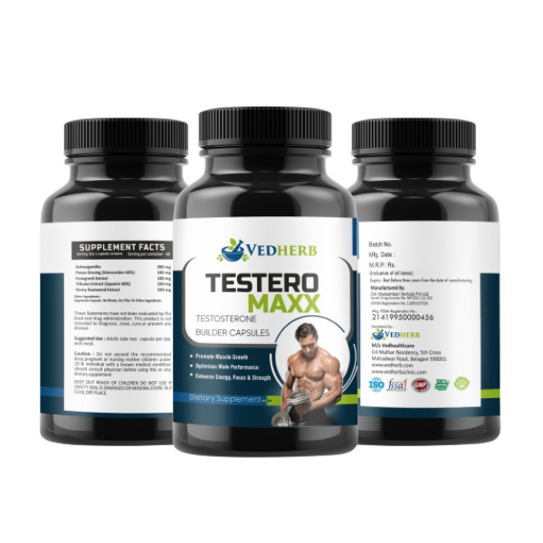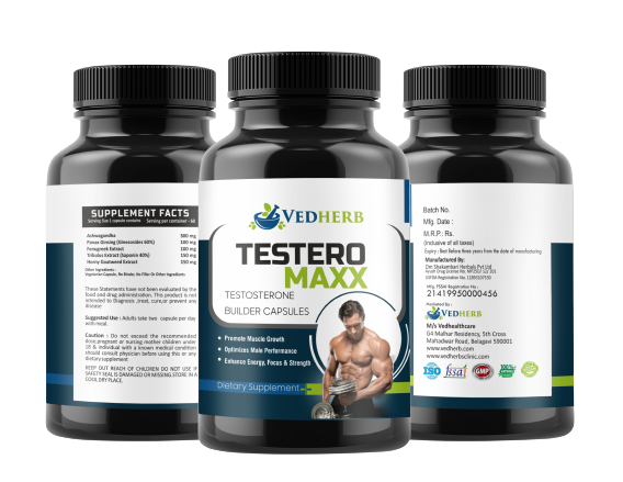 Vedherb Testeromaxx capsule is essential for health and well being in males and insufficient levels of testosterone in men can lead to various abnormalities. To boost the level of testosterone, Max Power is the perfect supplement you need as it helps promote natural testosterone release in your body to enhance the muscle build up. The active ingredients in Testeromaxx are withaina somnifera extract, mucuna pruriens extract, chlorophytum borivilianum extract.